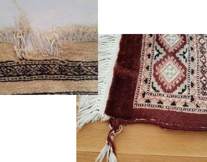 Es wird eine fachliche Reparatur geboten, inkl. Mottenstellen, Fransenreparatur und Löcherreparatur
